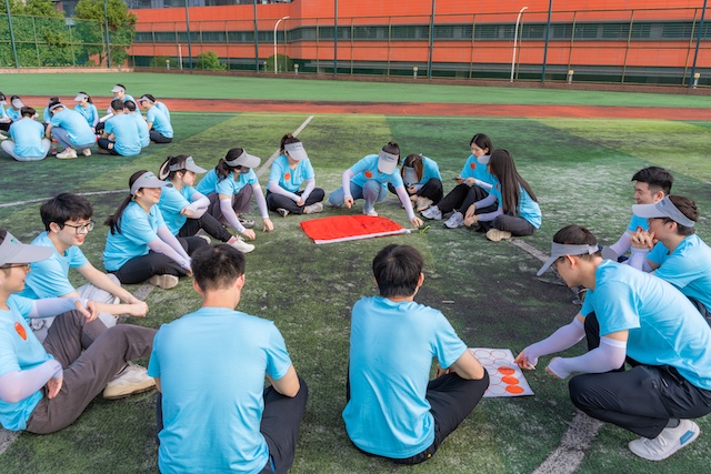 很多团建项目贵在道具和器材。欣航的游戏库中有大量“0道具游戏”,比如“解手链”“盲人方阵”“小组造句”,只需要人,就能玩出效果。
